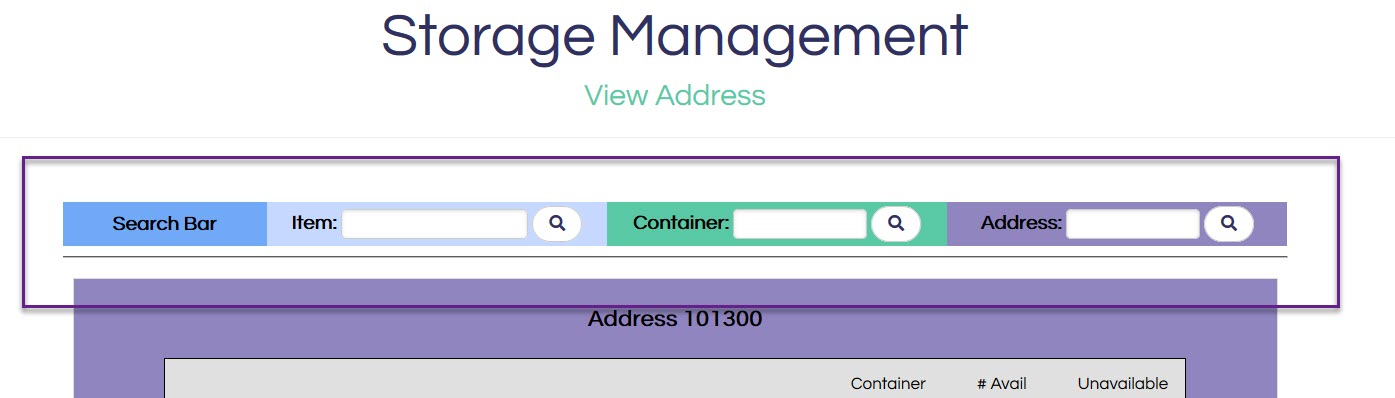 Anchor a quick search bar at the top or bottom of result pages in the Storage Management Module. Quick search for an item, container or address without returning to the Storage Management Module main page to reset. Toggle this feature on in the System & Module Settings section of Administration.